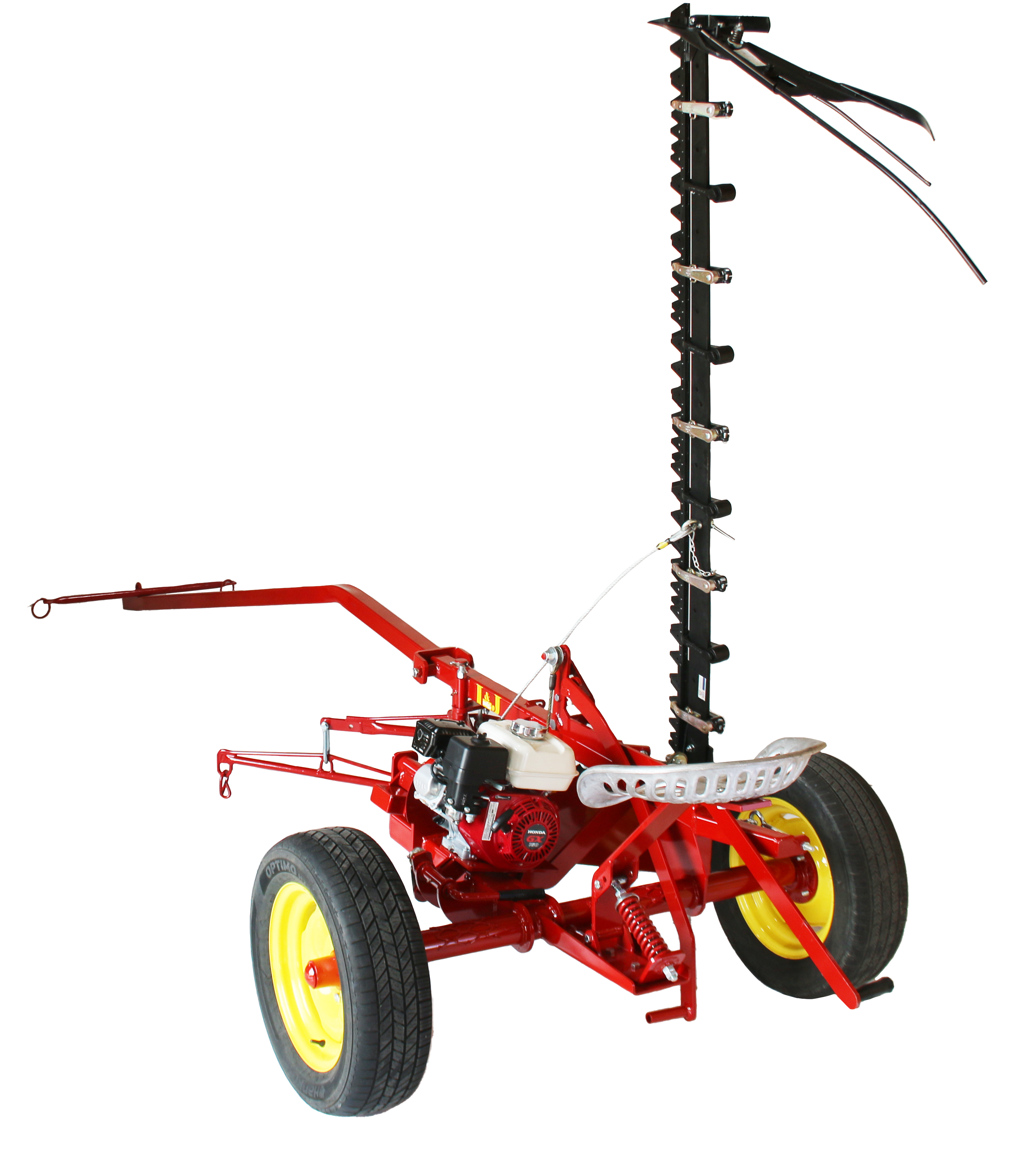 | #656 – Trailed mower with wheels in front + 9 H.P. Motor and choice of cutter bar length 5.5′, 7′, 8′ or 9′ | 1160 LBS | 110″ L x 60″ W x 48″ H | $11,100.00 (Price with 8′ Bar) |