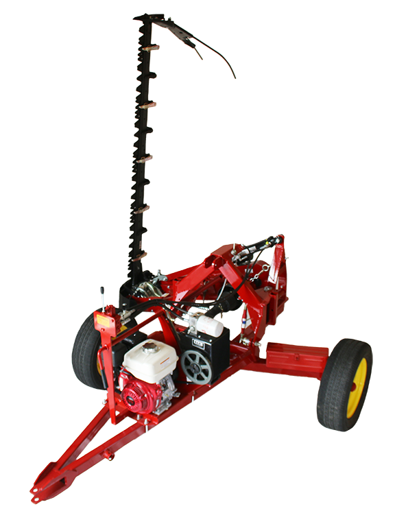 | #656 – Trailed mower with wheels in front + 9 H.P. Motor and choice of cutter bar length 5.5′, 7′, 8′ or 9′ | 1160 LBS | 110″ L x 60″ W x 48″ H | $11,100.00 (Price with 8′ Bar) |